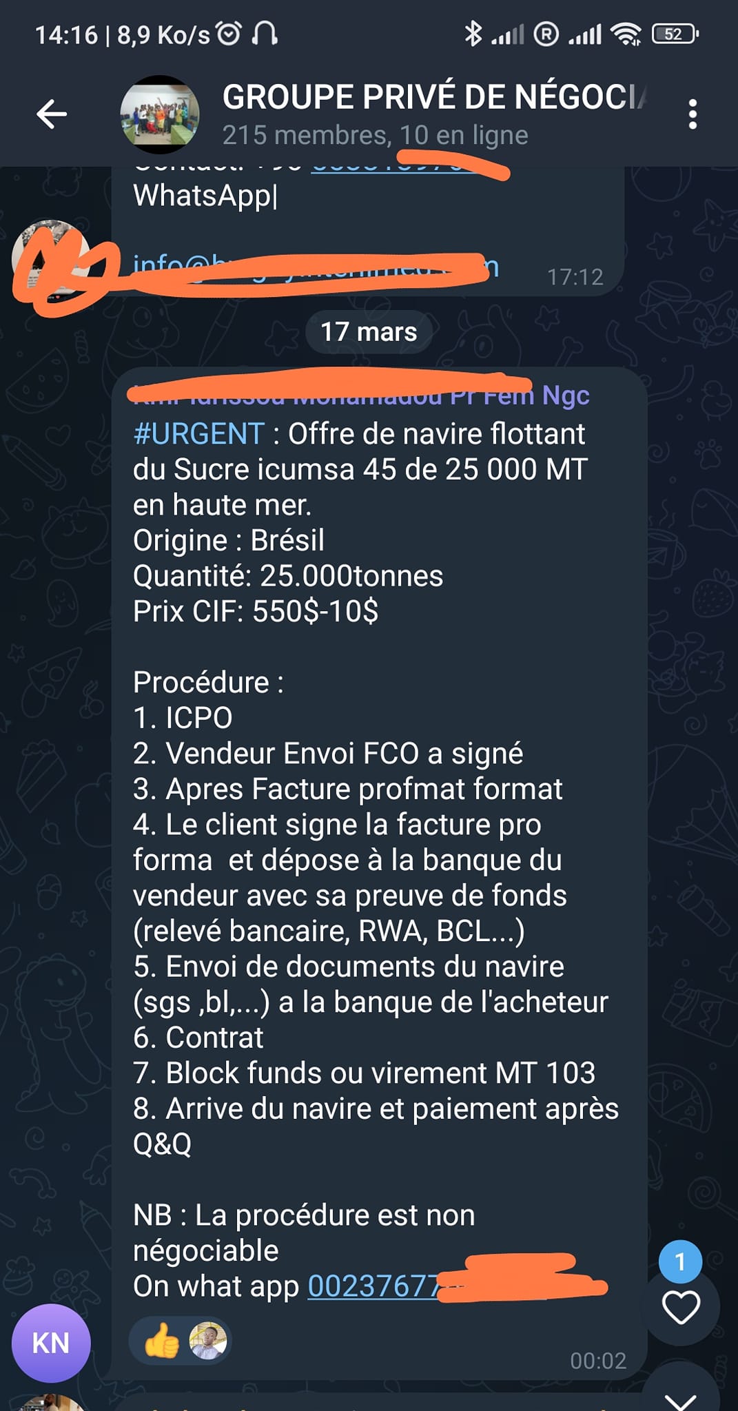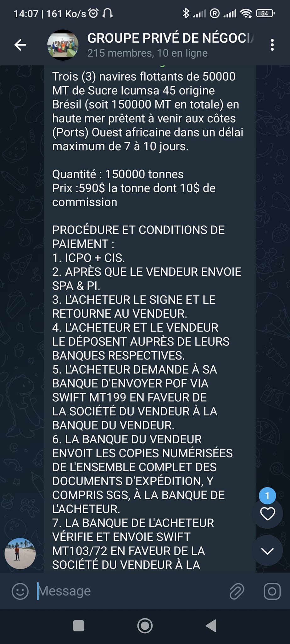 Pour cela je lisais les messages des membres de notre groupe prive de négociant, je me demandais si c’était moi ou une autre personne qui insufflait tout ceci a notre peuple !